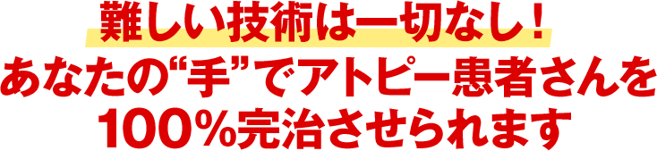 なぜなら、微圧の加減とか、手が出来てない、などといった、“難しい技術”が一切なしで、アトピー患者さんを治せる手技があるのです。
