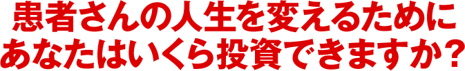 一生の財産ともいえる手技を、缶ジュース1本分の投資額で学べ、患者さんに感謝されながら成功していけるとしたら、どうでしょうか?