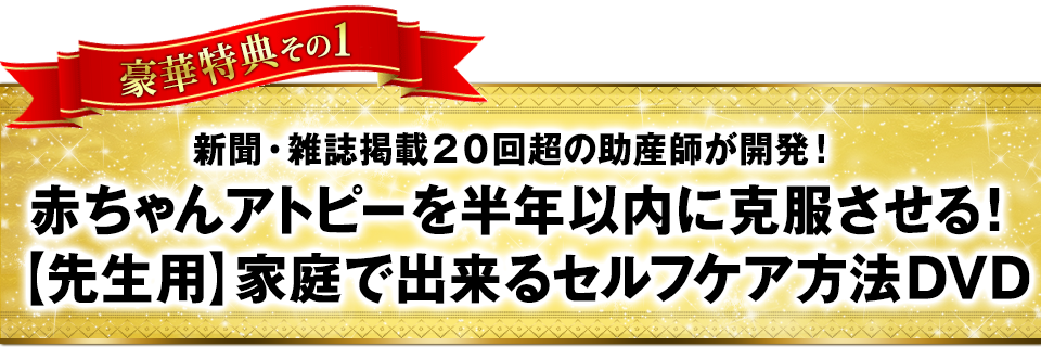 などなど、アトピー治療に欠かせない、赤ちゃん専用のケアについて全て詰め込んだ特典DVDになっています。