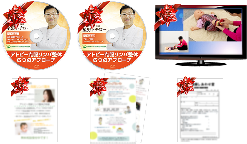 しかし、星野先生が今回DVDで初めてご自身の手技を公開しようと思った目的は、1人でも多くの治療家の先生に、「アトピー克服リンパ整体」をマスターしていただき、日本中のアトピー患者さんに笑顔になってもらうことです。